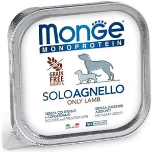 Generico Monge Monoprotein Paté Solo Agnello, Cibo Umido per Cani, Formula Grain Free Monoproteica,12 vaschette da 150 g l'una