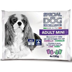 EXCELLENCE Bocconcini Special Dog Excellence Adult Mini, Agnello-Coniglio in Salsa, 4 x 100g