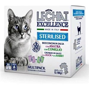 MONGE LECHAT EXCELLENCE UMIDO 12 BUSTINE 100 G FLOWPACK ADULTO STERILIZZATO 6 ANATRA 6 CONIGLIO