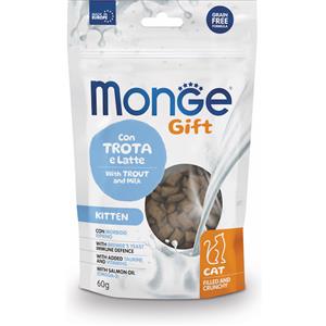 Monge Snack Gift Gattino Trota e Latte - Alimento Complementare Croccante e Morbido per Gattini in Accrescimento, 60 g