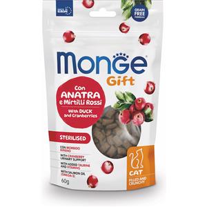 Monge Gift Meat Minis Snack per Gatti Adulto Sterilizzato con Anatra Fresca, Melagrana e Mirtilli Rossi - 50 g in Alimenti Cani e Gatti
