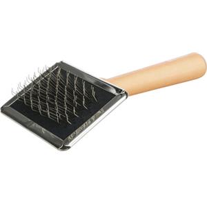 TRIXIE Spazzola Morbida 9 x 13 cm con Manico in Legno e Setole Metalliche per Gatti e Cani