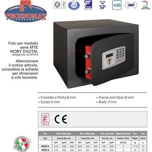 Technomax Cassaforte a Mobile MTE/3 con Combinazione Elettronica Digitale Motorizzata e Display a LED 340x300x210mm