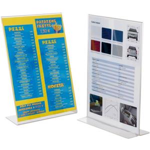 Tecnostyl Porta Avvisi A4 Orizzontale in PS Trasparente con Base a 'L'