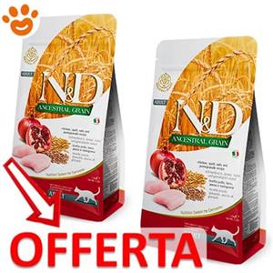 Farmina Cat N&D Ancestral Grain Adult Pollo e Melagrano - Offerta [PREZZO A CONFEZIONE] Quantità Minima 2, Sacco Da 5 Kg