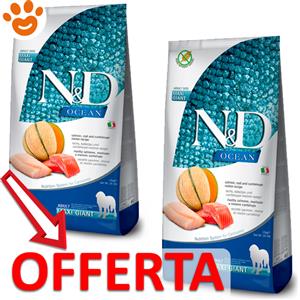 Farmina N&D Ocean Alimento Secco per Cani Adulti Maxi/Giant con Salmone, Merluzzo e Melone - Sacco da 12 kg