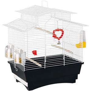 FERPLAST Gabbia Pagoda Bianca per Canarini e Piccoli Uccelli - Metallo e Plastica, Accessori Inclusi, Dimensioni 47 x 29,5 x h 50 cm