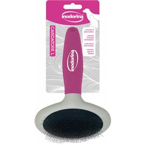 Inodorina Cardatore Arrotondato per Cani - Fili in Acciaio Inox, Ideale per Pelo Lungo e Medio, Taglia L
