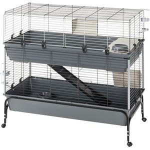 Ferplast Gabbia per Conigli RABBIT 120 DOUBLE - Gabbia a 2 piani con lato frontale apribile, scaletta in legno e accessori inclusi