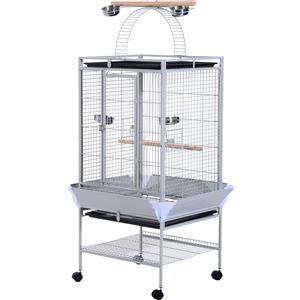 PawHut Voliera per Uccelli con Ruote - Altezza 161.5cm, Vaschette in Acciaio e Trespoli in Legno