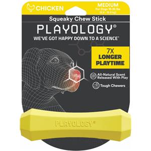 Playology Stick Masticabile con Squeaker per Cani di Taglia Media - Aroma Naturale di Pollo, Facile da Pulire e Materiali Atossici