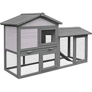 PawHut Conigliera da Esterno in Legno di Abete con Casetta, Vassoio e Rampa - Spaziosa per Conigli e Roditori 122x62.6x92 cm, Grigio e Bianco