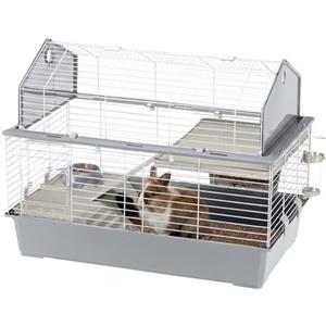 Ferplast Gabbia per Conigli BARN 80, 2 Piani, Tetto Apribile, Accessori Inclusi, Design in Stile Fienile Americano