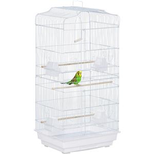 PawHut Gabbia per Uccelli Bianco con Trespoli, Altalena e Ciotole - Voliera in Metallo e Plastica 46.5x35.5x92cm