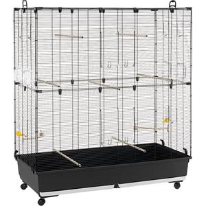 PawHut Gabbia Doppia per Uccelli in Metallo 95x45.5x102cm con Vassoi Estraibili, 4 Ruote e Ripiano Aperto, Nero Grigio