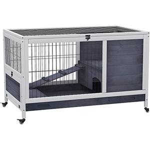 PawHut Conigliera in Legno a 2 Livelli con Casetta, Rampa e Vassoio Estraibile per Conigli e Porcellini d'India, 91.5x53.3x73cm, Grigio