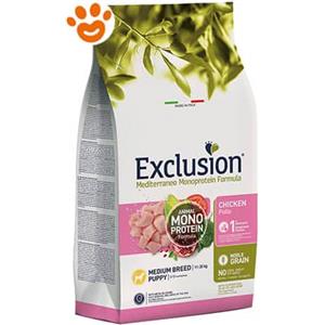 *Exclusion EXCLUSION MEDITERRANEO MONOPROTEIN PER CANI PUPPY MEDIUM BREED CON POLLO 3 KG
