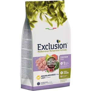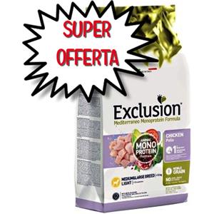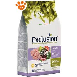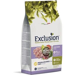 Exclusion - Mediterraneo Monoprotein Adult Medium/Large Breed Light con Pollo- 12 kg PREZZO COMPRESO LA SPEDIZIONE € 58,40