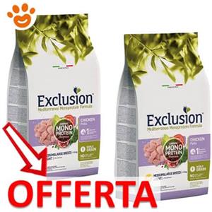 EXCLUSION MEDITERRANEO Per Cani LIGHT Pollo MEDIUM LARGE 12 kg Prezzo x 2 unità