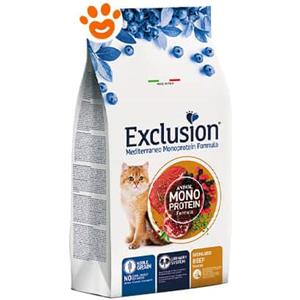 Exclusion Mediterraneo Cat Sterilizzato Manzo 12 kg - Cibo monoproteico gatto - 1° ORDINE? scegli tra BZR5 - BZR20 + 200 pt fedeltà