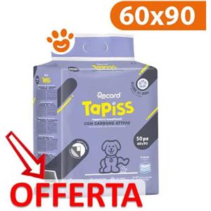 Record Tapiss - Tappetini Igienici Assorbenti 60x90 cm, 50pz, Monouso, Extra Assorbenza, Antistrappo e Antiodore per Cani