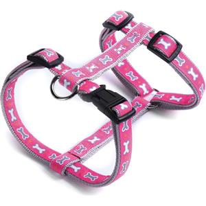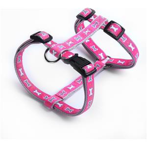 Record Pettorina per Cani in Nylon Rosa con Fantasia Ossicini - Taglia L (51-72 cm)
