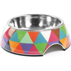 Record Ciotola per Cani in Melamina e Acciaio Inox - Ø 17,5 cm, Capacità 350 ml, Design Geometrico Multicolore con Gommini Antiscivolo