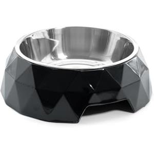 Record Ciotola per Cani Diamond - Acciaio Inox e Melamina, Ø 18 cm, Capacità 350 ml, Colore Nero, con Gommini Antiscivolo