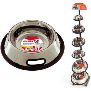 CAMON Ciotola Durapet per Gatti - Acciaio Inossidabile, Ø 13,5 Cm, Capacità 300 Ml, Antiscivolo