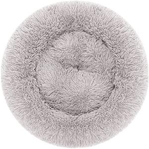 Record Cuccia Batuffolo Ciambella per Cani e Gatti - Morbida in Peluche Grigia, Antiscivolo e Lavabile