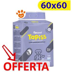 Record Tapiss Tappetini Igienici per Cani Ultra Assorbenti ai Carboni Attivi - Confezione da 50 Tappetini 60x60 cm con Base Impermeabile e Angoli Adesivi