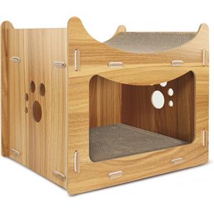 Record Tiragraffi Pagoda per Gatti - Struttura in Legno e Cartone, Forma Rettangolare, Dimensioni 45 x 30 x 35 cm, con Catnip e Funzione Cuccia