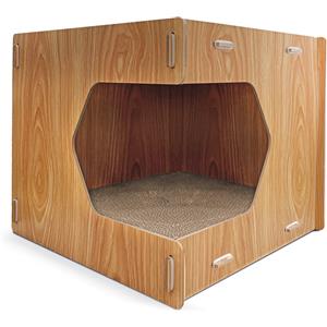 Record Tiragraffi Loft in Legno e Cartone - Cuccia Cubica con Ingresso ad Angolo e Catnip (40 x 40 x 35 cm)