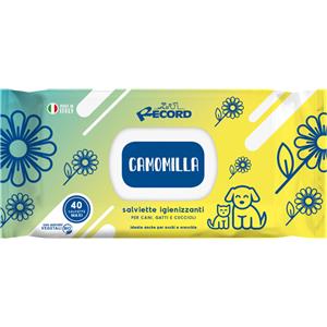 Record Salviette Igienizzanti alla Camomilla per Cani e Gatti - 40 Pezzi, Antibatteriche e Delicate per Pelo e Zampe