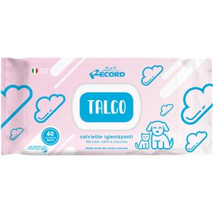 Record Salviette Igienizzanti Umide per Cani e Gatti - Confezione da 40 Pezzi, Rispettano Cute e PH, Aroma Talco