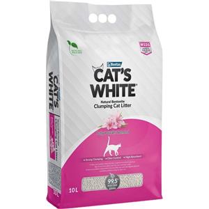 Cat's White Lettiera Agglomerante Profumata al Talco 10L per Gatti e Gattini con Granuli Rotondi e Alta Capacità di Assorbimento