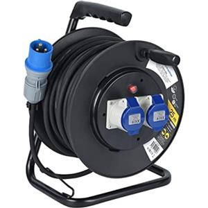 Electraline Prolunga in Gomma con Avvolgicavo 25m, 2 Prese Industriali IEC e Spina a 3 Poli CEE, Adatta per Camper e Cantiere