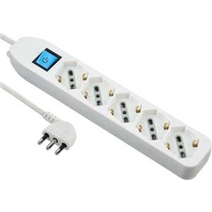 Electraline Multipresa 5 Posti Polivalenti Bianco con Interruttore e Cavo da 3 Metri