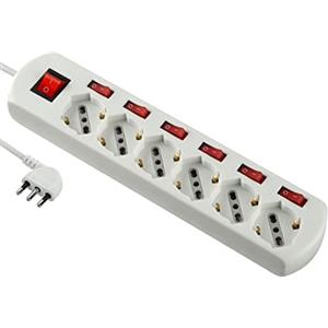 Electraline Multipresa Elettrica 6 Posti Bivalenti 10/16A con Interruttore e Cavo da 1,5 m Bianco in Materiale elettrico