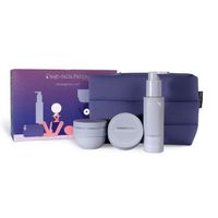 La Saponaria Kit Viaggio Essential - Set Travel Size con Doccia Shampoo, Scrub, Shampoo, Balsamo e Crema Corpo in Pochette di Cotone Naturale