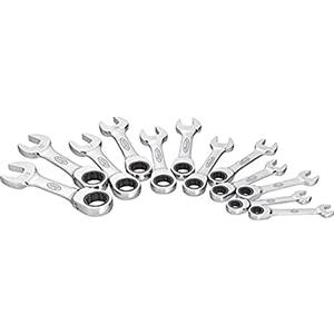 Vigor V2821 Set di Chiavi Combinati a Cricchetto - 12 Pezzi Corti con Astuccio Arrotolabile