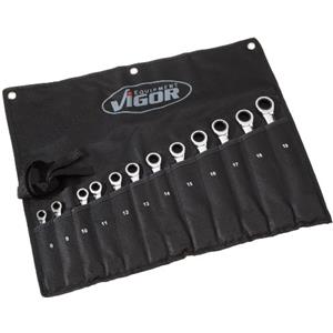 Vigor Set di chiavi combinate a cricchetto - 12 pezzi lunghe con astuccio arrotolabile