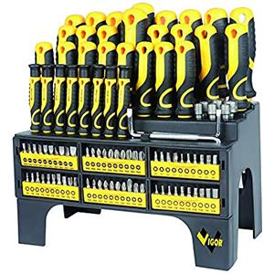 Vigor Set Cacciaviti e Inserti 100 Pezzi - Include 8 Cacciaviti, 60 Inserti, Base di Appoggio e Chiave Cricchetto