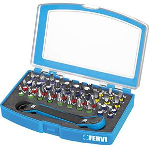 Fervi Inserti con Cricchetto 41 Pezzi - Set Esagonali in Acciaio S2 con Cricchetto Reversibile a 72 Denti