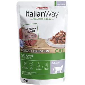 Italian Way Sfilaccetti in Salsa per Gatti Adulti - Gusto Agnello, 85 gr, Delicate Digestion, Grain Free