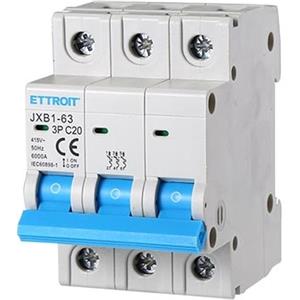 Ettroit Interruttore Magnetotermico Automatico 3 Poli 20A 380V con Capacità di Interruzione 6KA