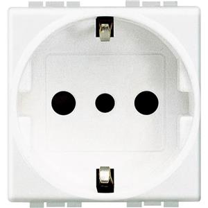 Ettroit Presa Schuko 2P T 10/16A 250V Bianca Compatibile Bticino Axolute - Interasse 19mm e 26mm