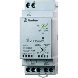 Finder 11.41 Relè Crepuscolare 1 Scambio 16A con Sensore Fotosensibile, Montaggio Barra DIN, 2 Moduli, Risparmio Energetico