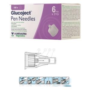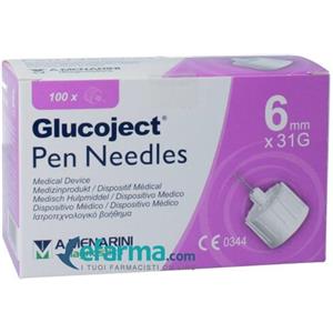 Menarini Glucoject Pen Needles Aghi per penne da insulina G31 6 mm 100 pezzi