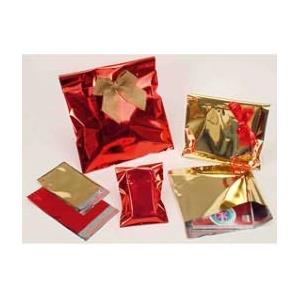 PNP Buste Regalo in PPL Metal Lucido Rosso 25x40 5cm con Patella Adesiva - Conf. 50 Pezzi